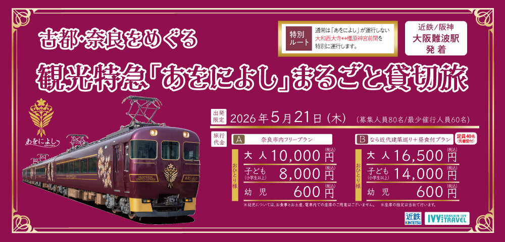 - 古都・奈良をめぐる 観光特急「あをによし」まるごと貸切旅